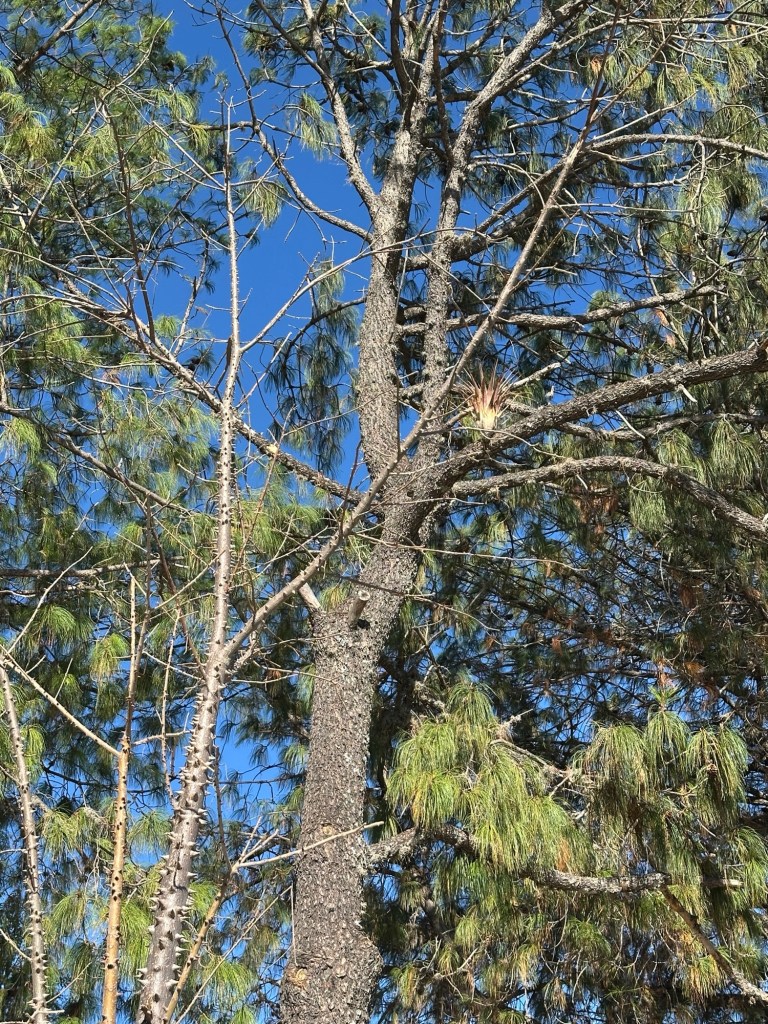Tree with beautiful barkThe bark on the twisted treeThe most beautifully shaped treeCovered in purple flowersHas an orchid growing on it