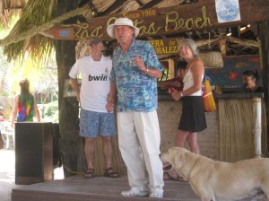 Signs were posted around town about the “Birthday Bash” so while the Senor glued himself to NFL playoffs at a local watering hole I went to the birthday/charity event. It was quite pleasant even though I felt like quite an outsider as I didn’t know a soul when I arrived, but that was soon remedied. I purchased one of Owen’s books, “Dog Gone” and he was gracious enough to sign it for me, I had previously read his “Prisoner in Paradise” which has since been passed on to friends. I listened to some very good musicians, heard some local tales.