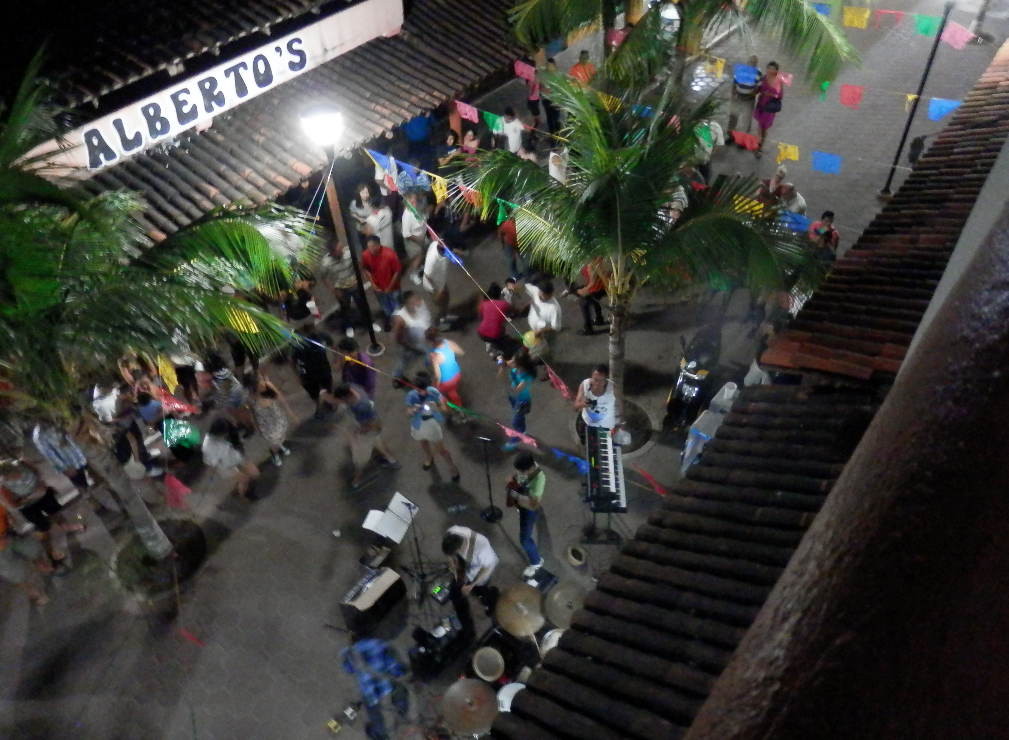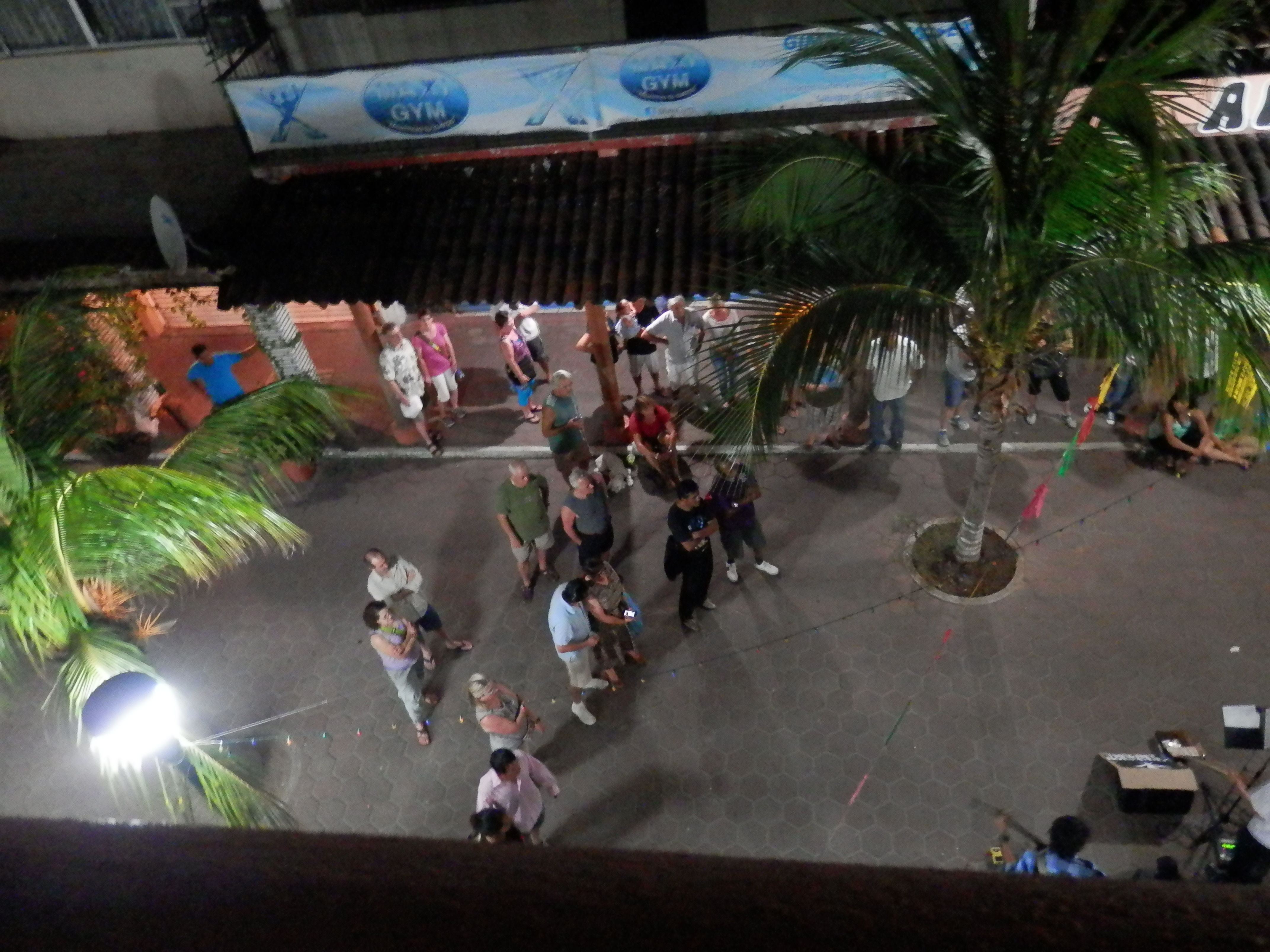 But soon a few dancing couples get out there and then the entire street has erupted into dancing and singing to the music and begging for more each time the band said it was quitting time. A totally mixed crowd of tourist, snowbirds, and local mexican families.  What a wonderful impromptu street dance, a truly wonderful Zihuatanejo evening.