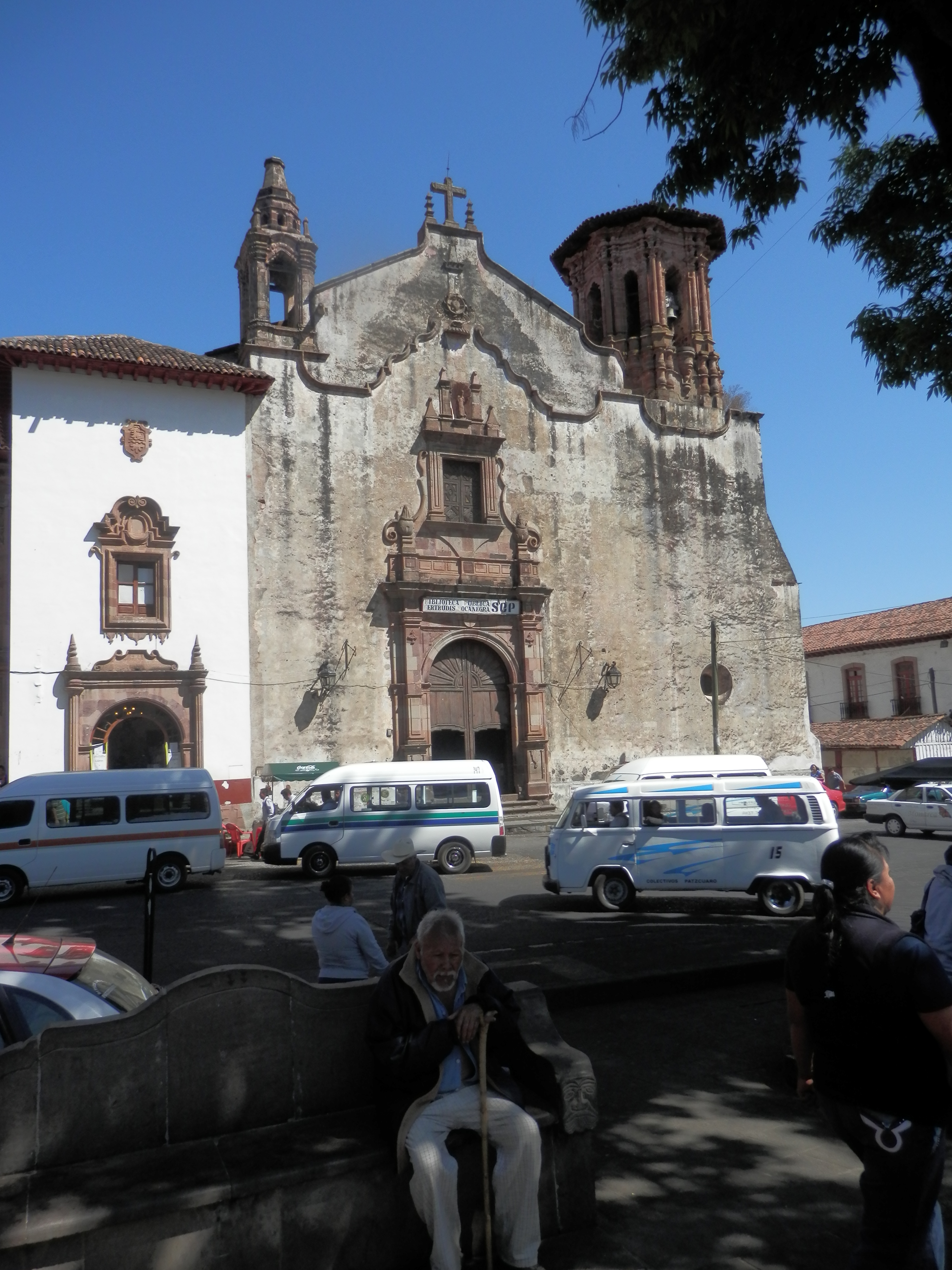 The Senor and I head out for Lake Patzcuaro this morning following the advice of our desk clerk that you needed to take a bus to Patzcuaro. She was wrong. We flagged a cab right outside our hotel, said bus station and that we were headed to Patzcuaro. Taxi driver said he would take us to Patzcuaro for $300 pesos and it would be ” mucho rapido”. All this was done in Spanish as we have yet to find an English speaking person in Uruapan. Patzcuaro is about an hours drive out of Uruapan through beautiful countryside of avocado trees and pine trees. We brought our sweat jackets as it about 7,000 ft elevation but we never needed them. We arrived at the beautiful and ancient Zocolo in Patzcuaro and wondered why