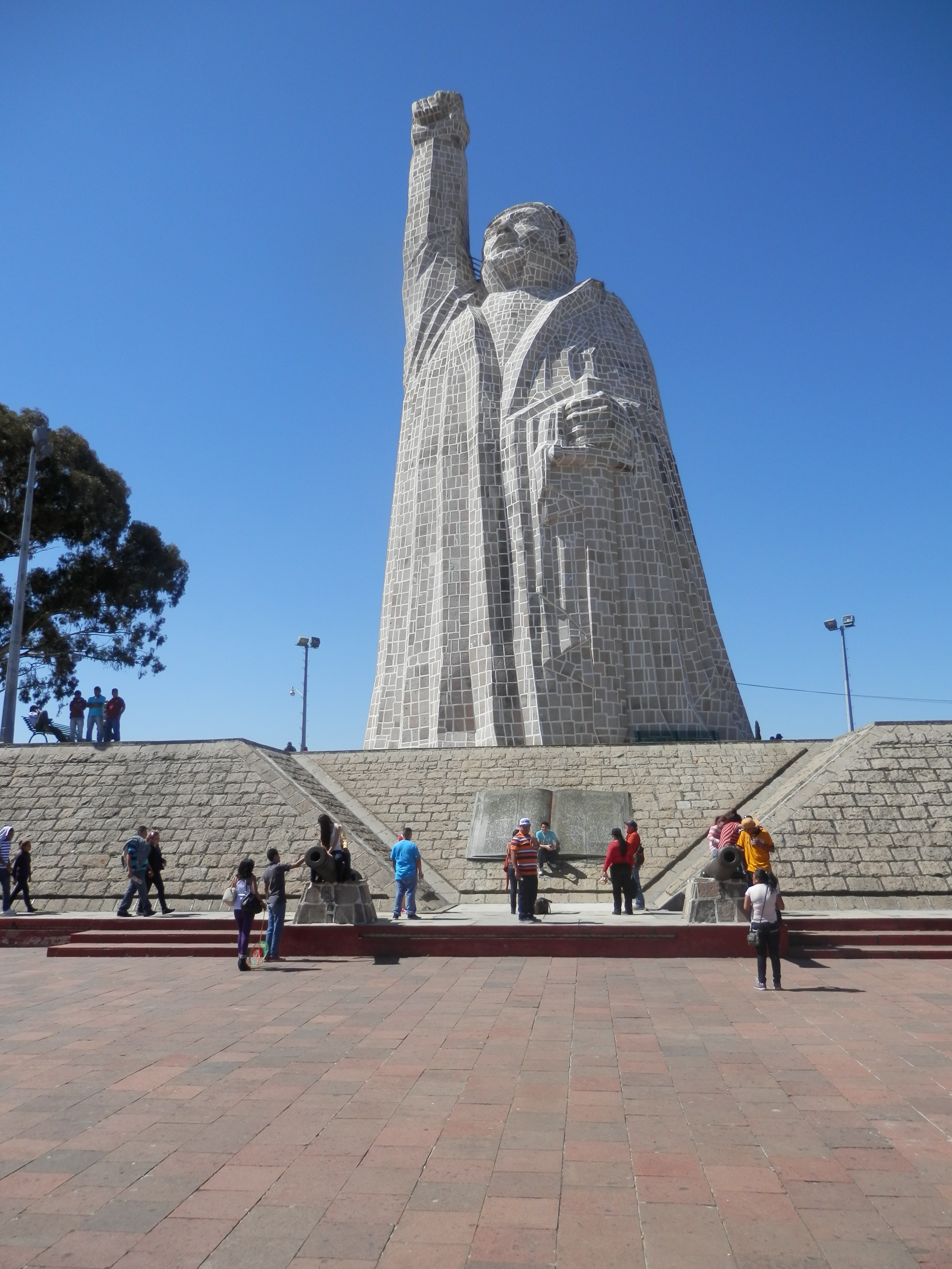 We then took a taxi to “La lancha” about 2 miles across town to catch the launch to the island of Janitizo in the middle of Lake Patzcuaro. My next trip there I will know more about it’s history as there is no literature in English to be found. At the top of this hill island is an enormous statue of someone and it’s embarrassing not to know who it was of. But like lemmings we followed the crowd off the boat and headed up the stairs to the town. No roads, no sidewalks just rough cobble stone stairs clear to the top. The stairs are never more than 10 feet in width and 4 feet in other places with open sided shops and restaurants on both sides all hawking an interesting variety of wares and foods. At the top it is flat with restaurants and bars and a children’s play ground and stairs to the monument.