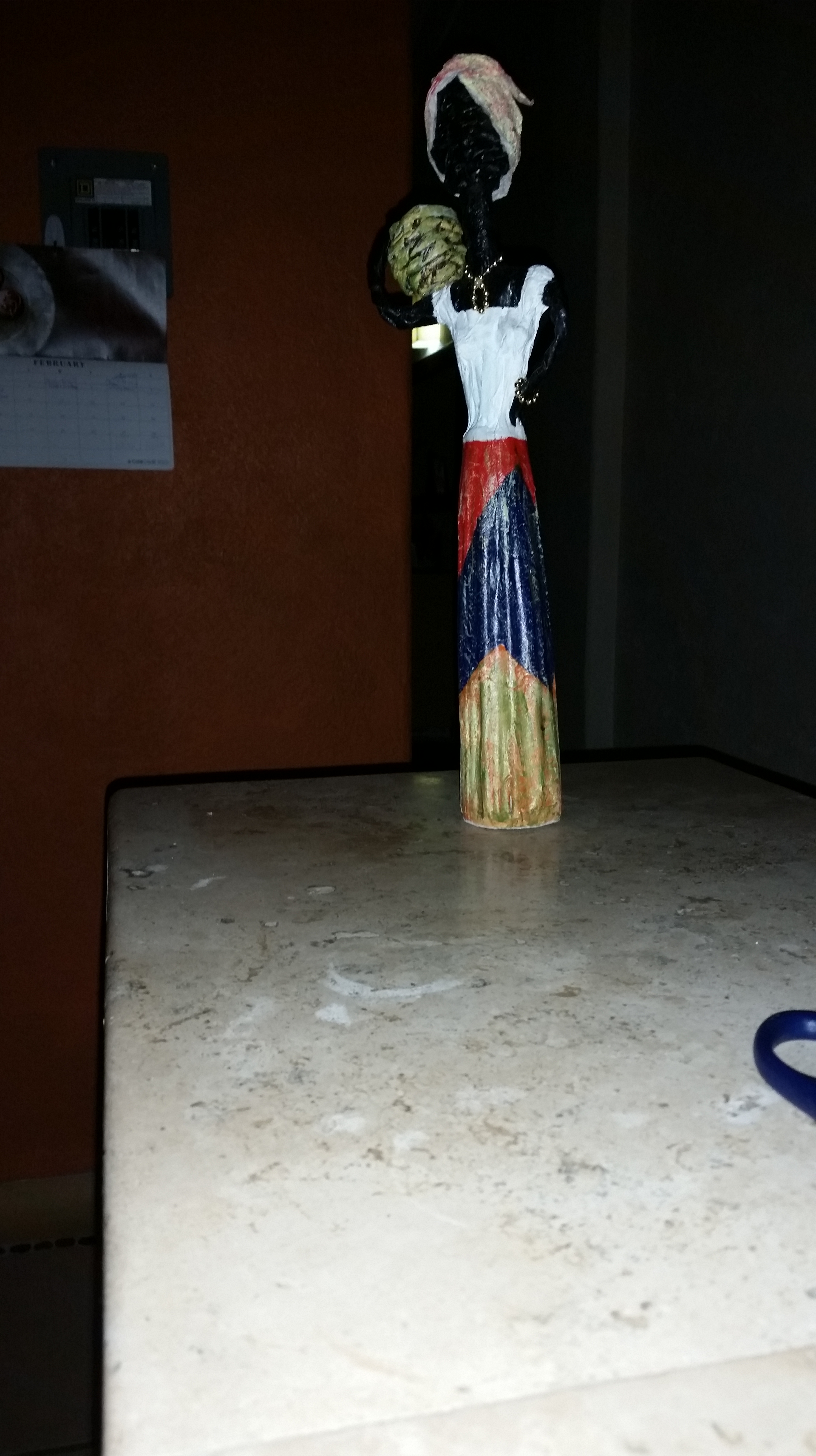 Today at the Ecco Tianguis I bought what constitutes art for me, a beautiful native statue made locally from paper mache, I think she is gorgeous, the Senor had a different comment. Signing off 02 01 15 KO