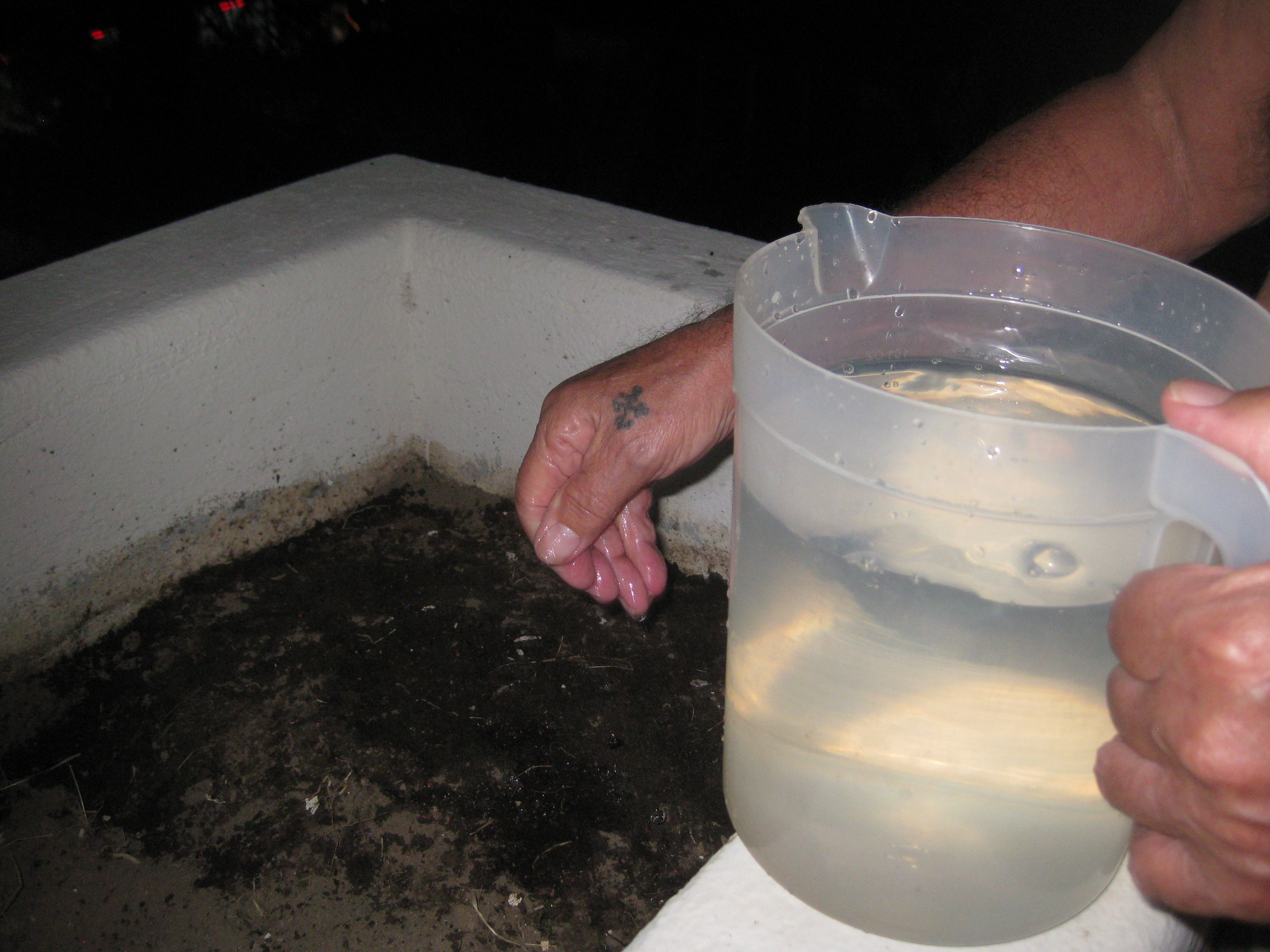 Hand sprinkling the seeds