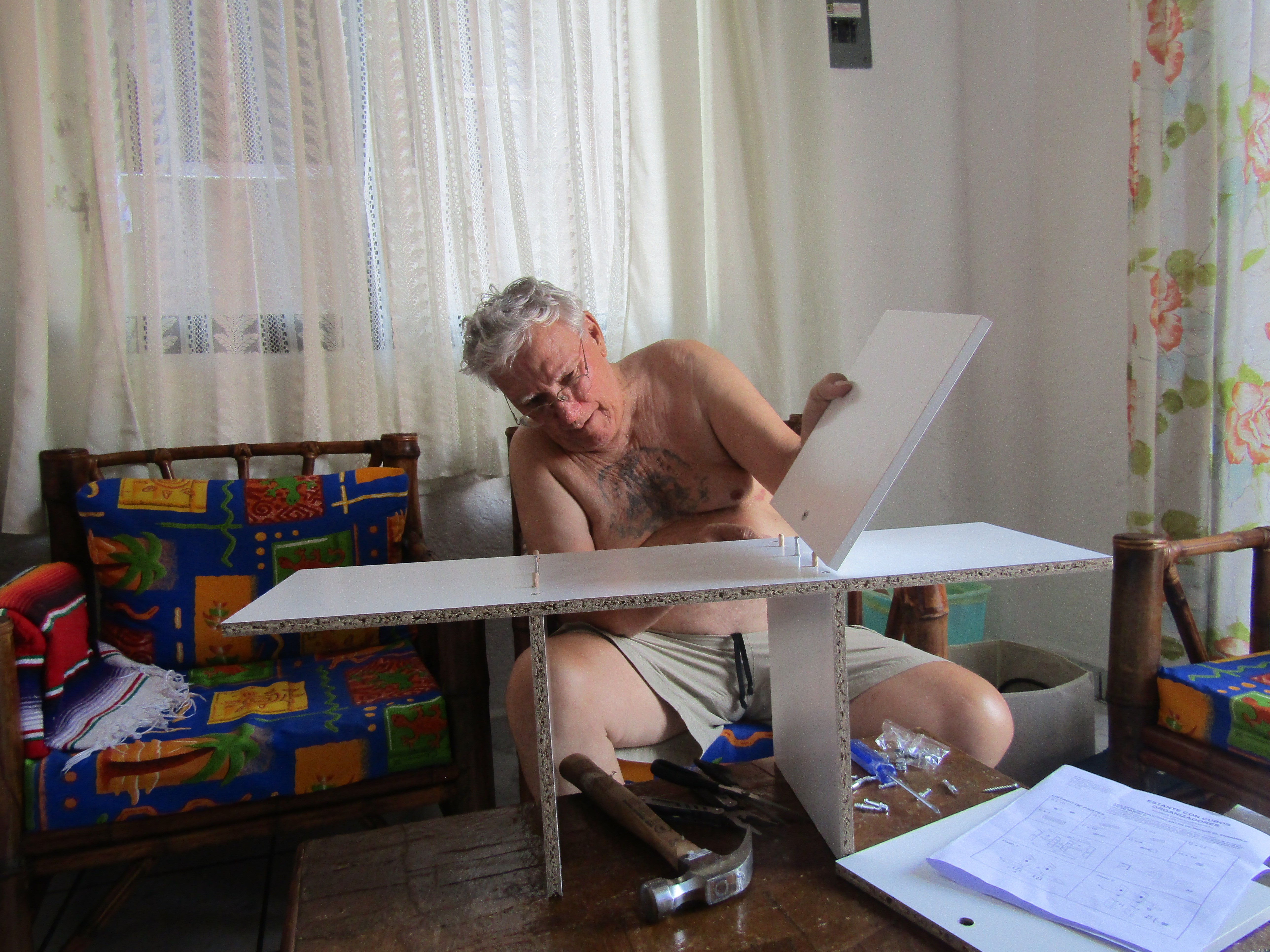 The Senor assembling our shelf unit