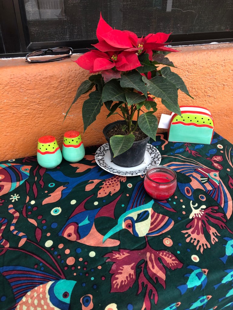 The Poinsettias are back and in their rightful place at Kyoto Circle, but not the Piñatas. The couple in the top apartment were kind and thoughtful and brought me a poinsettia. Nothing says Christmas like these gorgeous red flowers that are indigenous to Mexico.