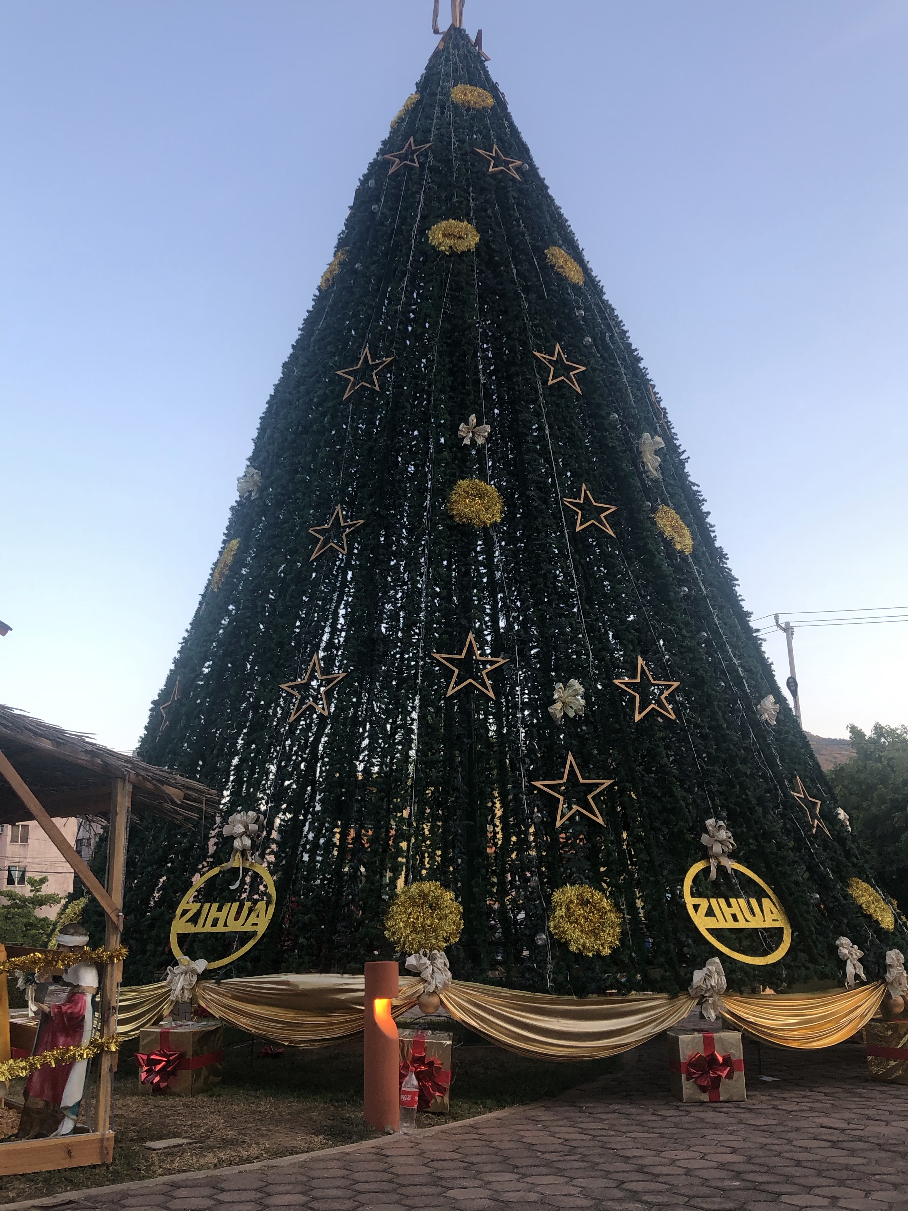 The huge Christmas tree at Kyoto Circle is beautiful and of course Santa is there with his reindeer. An almost life size crèche is on display waiting for baby Jesus to arrive. My favorite part was the large letters ZIHUA completely covered in poinsettias. Nothing says Christmas like the beautiful red flowers.