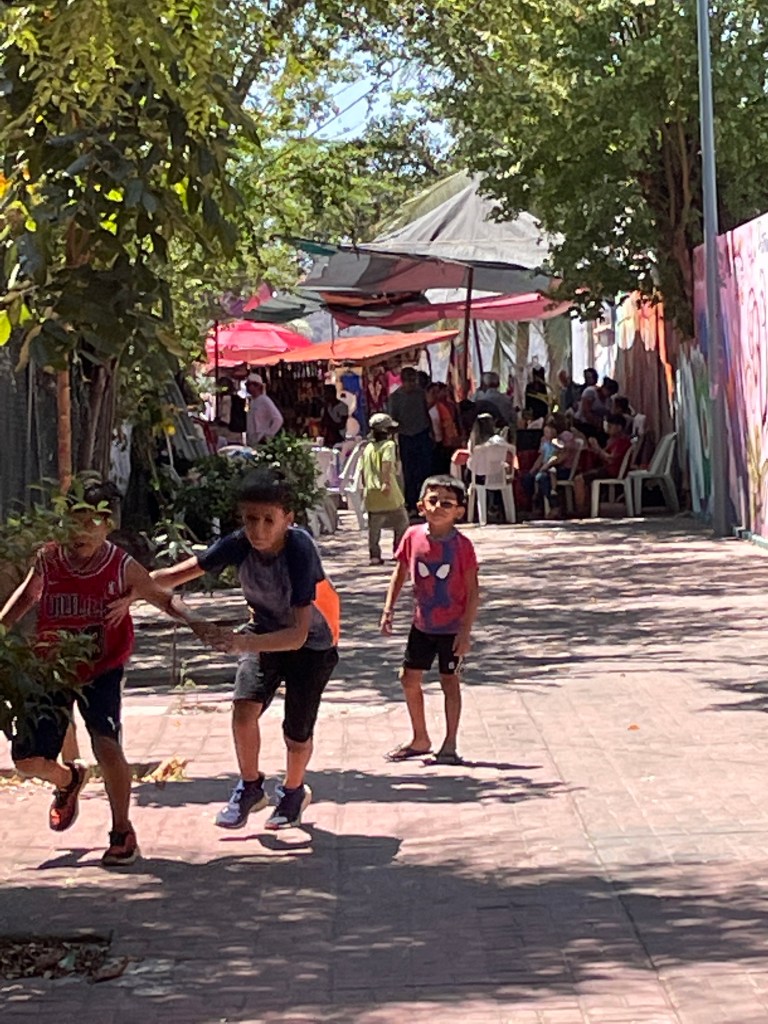 As I was returning to my apartment from the Saturday morning Ecco market there were 4-5 young boys running up and down the alley laughing and playing. They had an empty 1 liter plastic bottle and were throwing it and kicking it, playing games of keep away, catch, and soccer. All of their own invention, making up rules as they go, having a wonderful time using their bodies and their minds. Reminiscent of my generations “kick the can”. It did my heart good to see kids doing the work of children, having the freedom to play, to invent to socialize. I’m sure they were having more fun than any organized “little league” as as there was no pressure to perform, no one was watching, just me gazing in admiration.