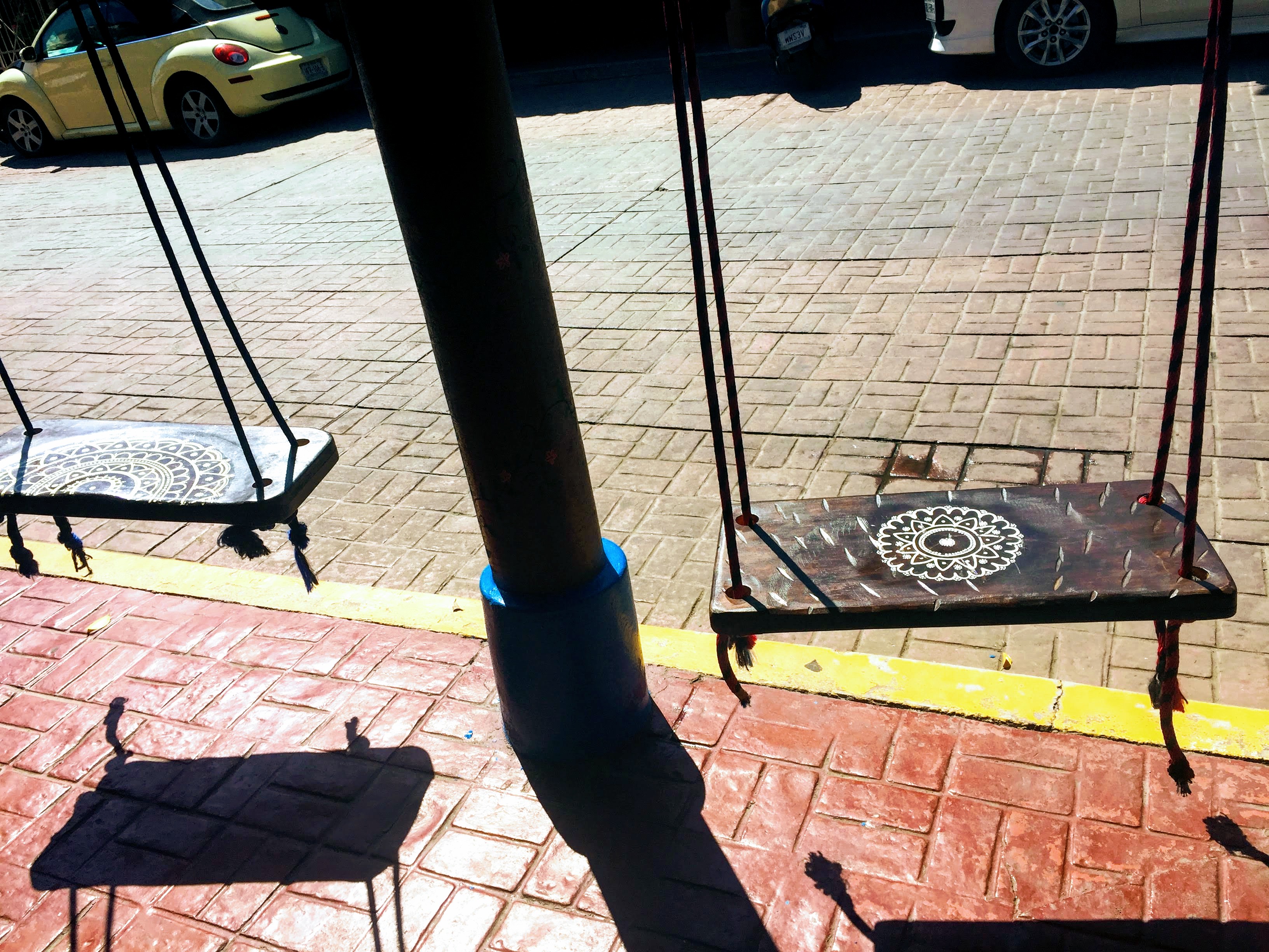 swings on colorful ropes