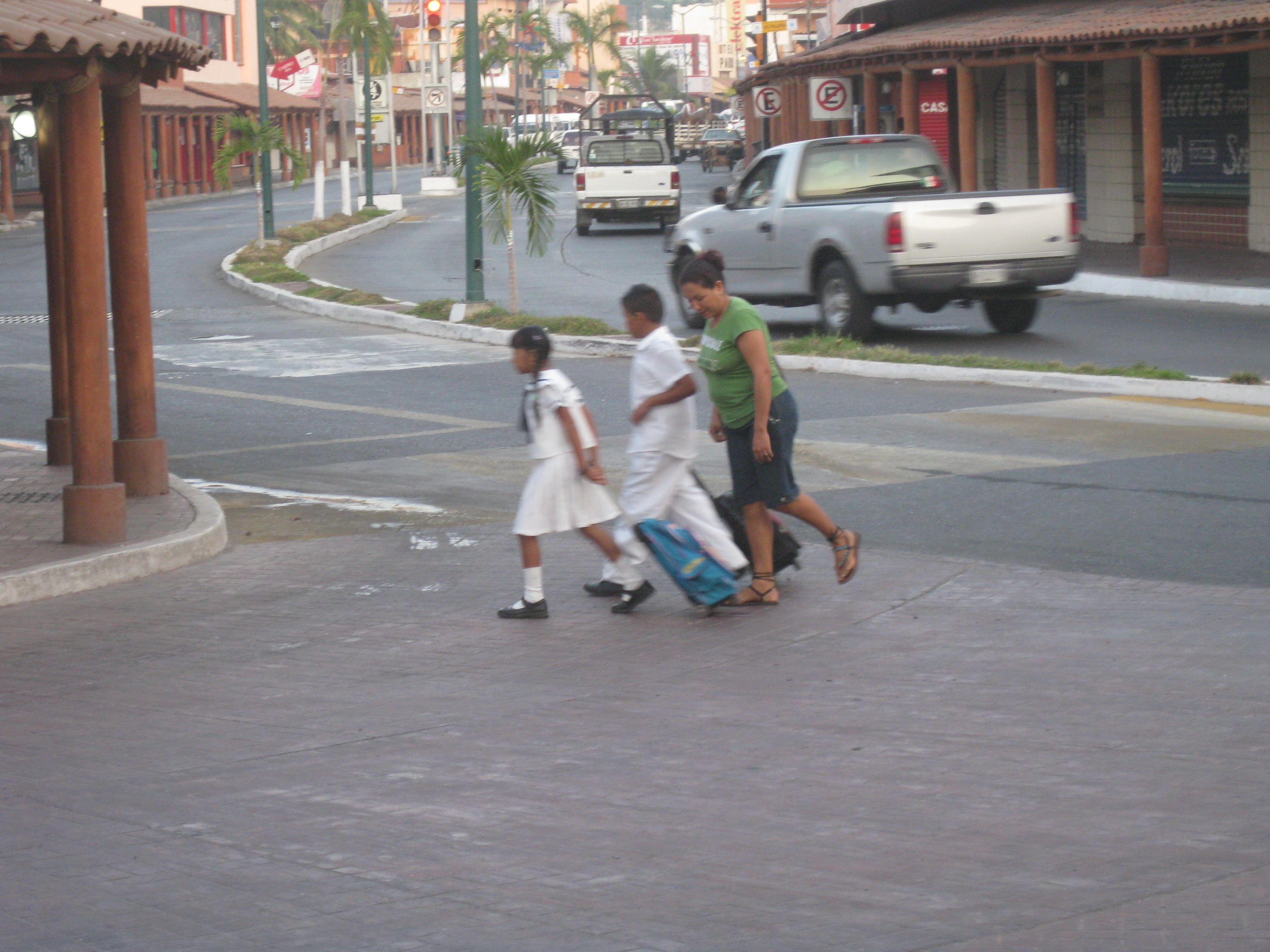 Always my fascination is with what I see different here. Every morning all over town mothers and fathers walk their children to school, girls in their uniform skirts and boys in white pants at the school closest to us. Boys all with short hair neatly combed girls mostly with long pony tails or braids.