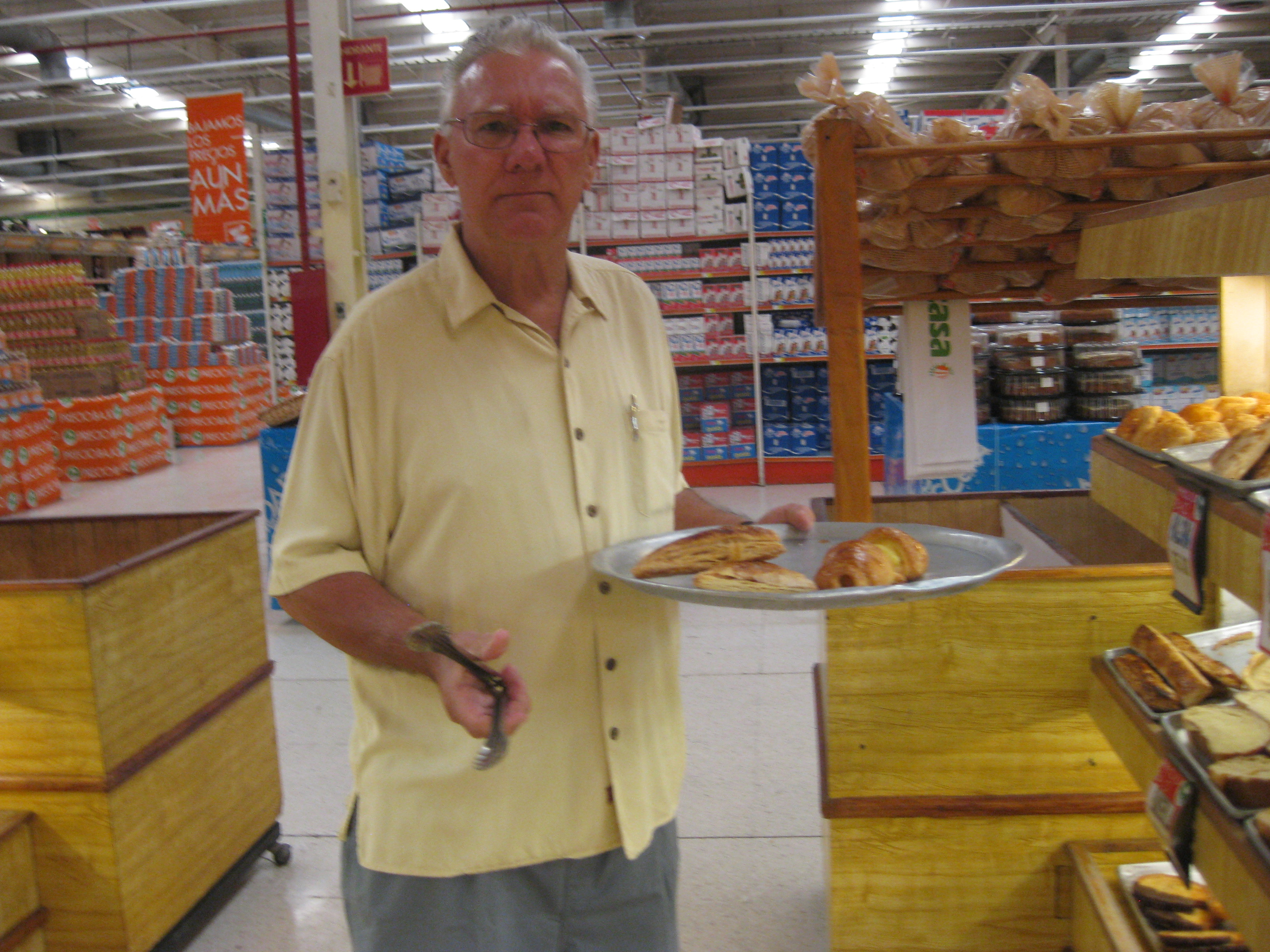 As nice as it would be to eat out everynight, we are budget travelers and have been fixing most of our own meals. A couple of breakfasts out and a couple of beach meals has been it. So off to the Comercial, the local super market. This is our second trip. We have figured it out, as we are here for 6 weeks, don’t buy the tiny size get the regular size so we don’t have to go as often. But while there we bought a crock pot, which I know I will enjoy. And the Senor learned how to work the pastry counter. You get a tray and tongs, pick out all that you want and take it to the pastry lady to bag and label with a price.