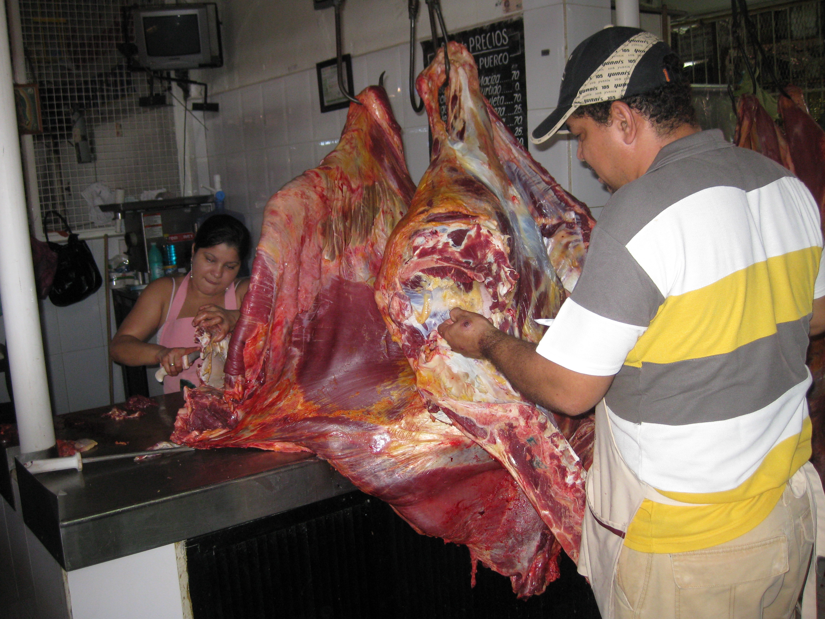 Our next stop was the Mercado for fruit, and meat. I will post a picture of a butcher slicing up a carcus in the open air market with a young girl somewhere between 12 & 14 apprenticed to what I assume is her father. Life is very different here. Most bag boys in the markets are 12- 14 and work for tips. And these are not after school jobs, they are full-time. After picking up enough groceries for a day or two we had lunch at one of the “fondas” at the Mercado, very mexican, very good, probably as close to “fast food” as you get in Mexico. I had a Chile Relleno and the “Senor” had Albonigas soup. No english is spoken here or is the menu translated for you. My knowledge of spanish while not good steadily improves. I can translate menus for “the Senor” as he chooses to limit his Spanish to “cervesa por favor”
