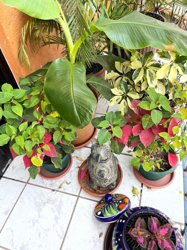 My garden is thriving all except for the thankless tomato plants that I have so lovingly cared for. I nursed them from seeds to seedling to starter size plants, transplanted the 5 hardiest ones to a large trough type pot. Watered them faithfully watched them blossom and then watched the blossoms fade with out setting fruit except for one tiny tiny tomato. Then they quit blossoming, and wilted in spite of the fertilizer I added and on going watering. They drooped until I couldn’t stand looking and the dying mass so I cut them down and disposed of them. Thankless plants. I don’t know what I did wrong. I need to read up on growing things in Mexico.