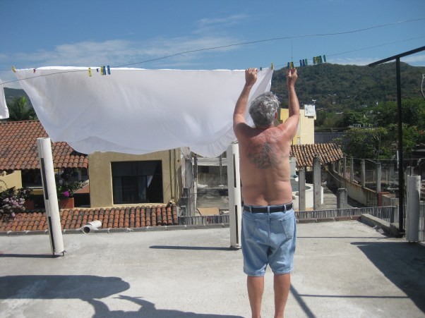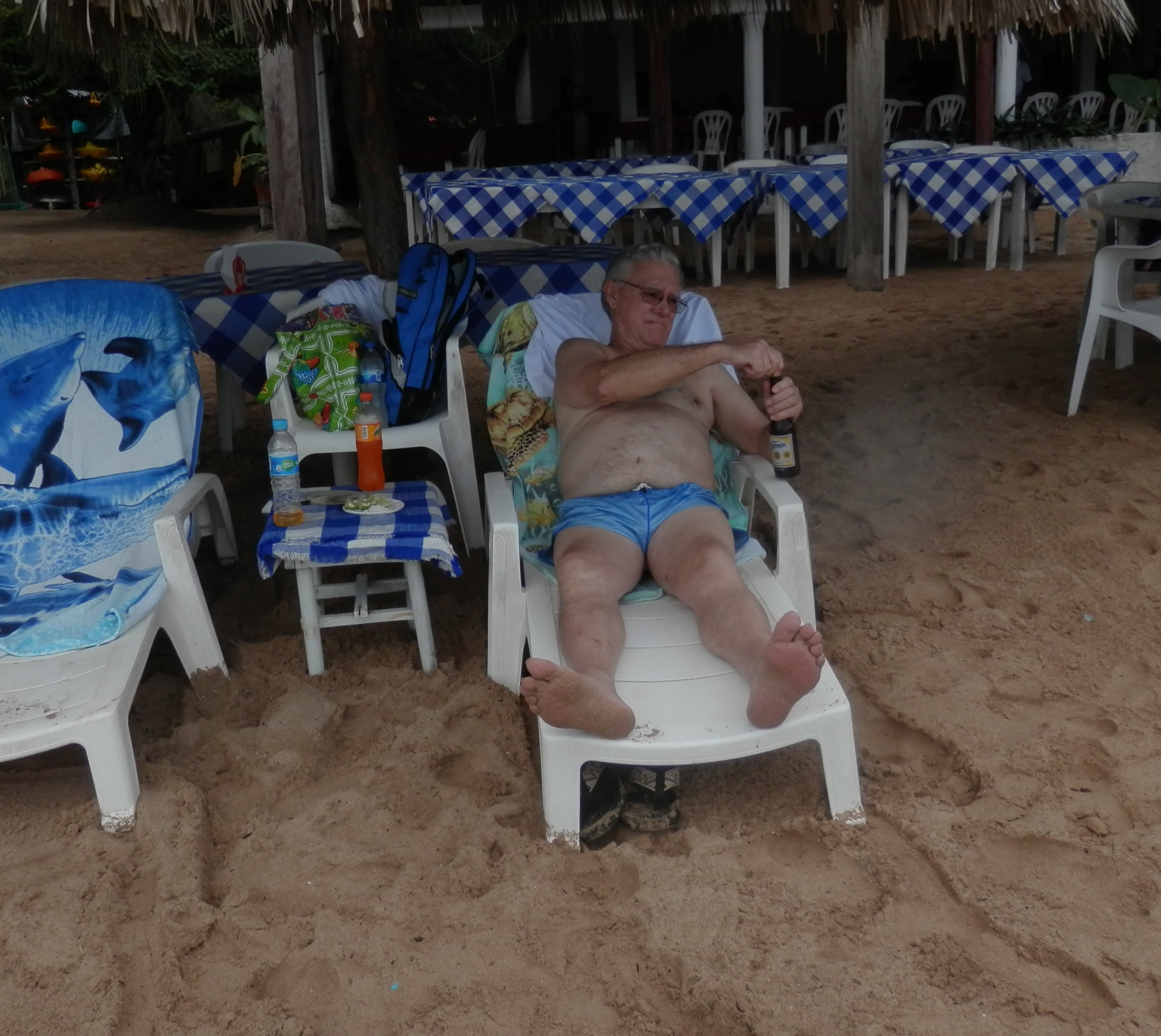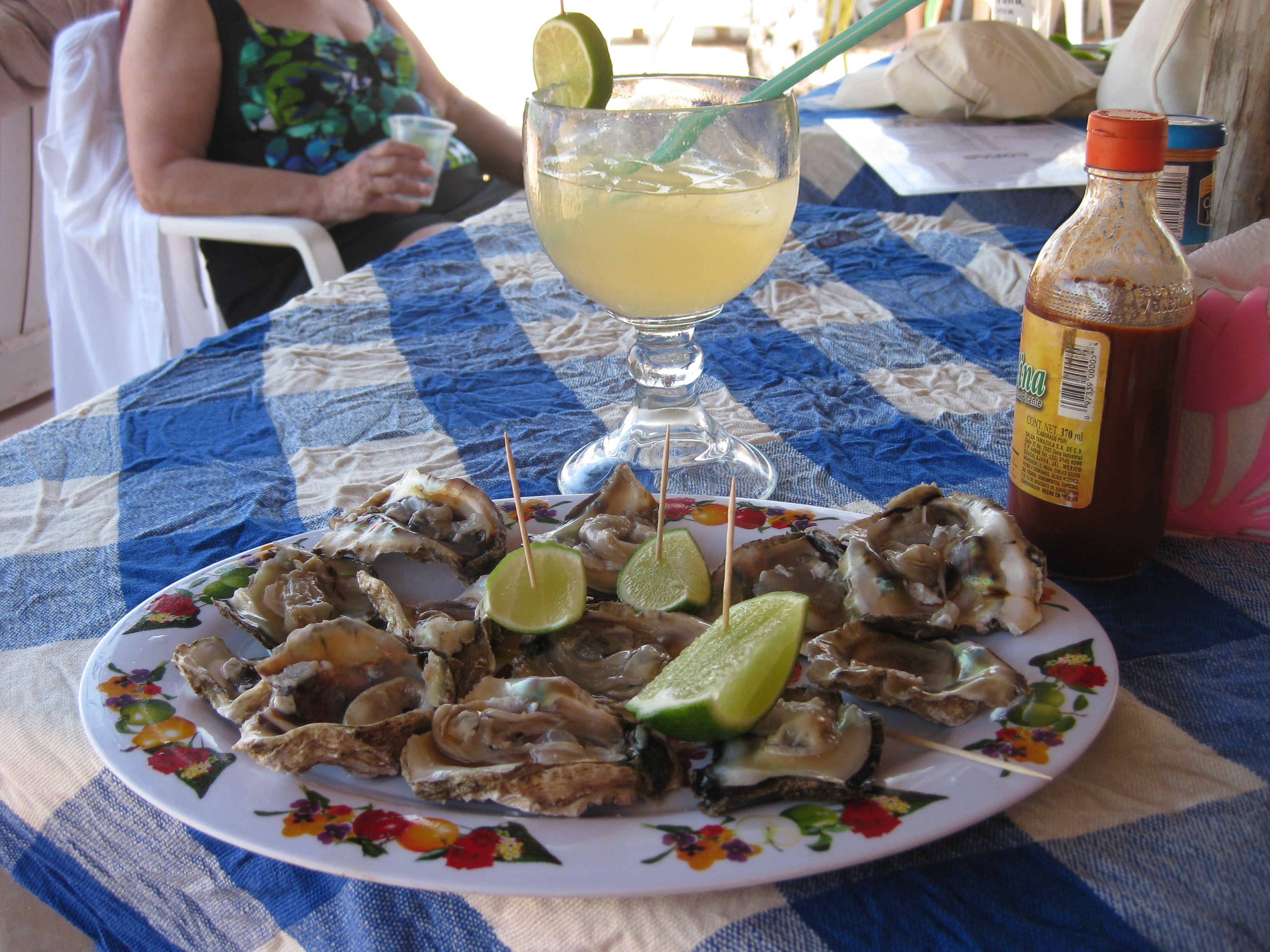 was up for this trip,but struggling with sciatica pain so we choose to wait in the little restaurant for the truck.Several taxi drivers tried to get our business but we choose to wait for the far less expensive pasajera. Well I think we got “Tom Sawyer-ed” as we were quite sure we could see from where we were when it would turn around but we also thought either the man at the fruit wagon or the taxis might signal us.Secretly I think they told the driver to turn around and then told us it came and went. No harm ! We took the taxi and got there just the same. After some mango daquris which were so thick they were almost a meal in itself we had a delicious fish pronounced “wahoo”, don’t know how to spell it correctly but it was very good with a side of ratatouille. The Senor seemed to be in a bit of a hurry to get back so we didn’t stay for the sunset, disappointing, but I try to understand his discomfort. Every day is a good day, every day is an adventure here in Zihuatanejo. Signing off, KO