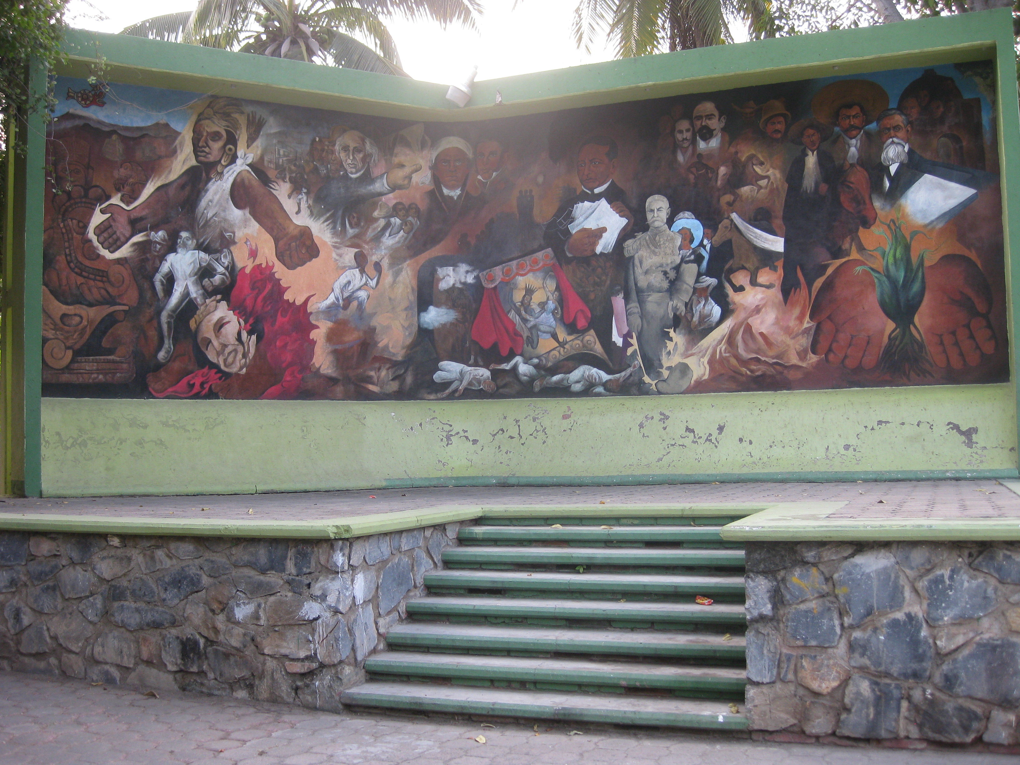 One of the pleasures of being a pedestrian in Zihuatanejo and varying your route from time to time is running into unexpected visual treasures. They may be in the form of architecture, flora and fauna, or wall art. One of the problems of being a pedestrian is that at times you feel like a visual target for the Mexican motorists,or maybe just open season on gringos. Anyway to avoid a particularly problematic street crossing I decided to adjust my route back from the swimming pool and that’s when I discovered this lovely street art. The long wall is actually the far side of El Pueblito, the others are located at the front side of El Pueblito just past their big wood door.