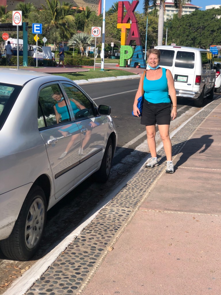 We started off early Tuesday morning, 7:00 am and expected to arrive in Ixtapa about 9:30. Weather was pleasantly cool at that hour of the day. I did need Bonny to walk at my pace, but we chatted on and it what seemed like minutes came to the place where the path heads left to Ixtapa instead of straight to Soriana’s. I had no idea what parts Zihuatanejo this path would take us but soon we crossed the main road where we could see the statues of the 4 ladies and knew where we were.