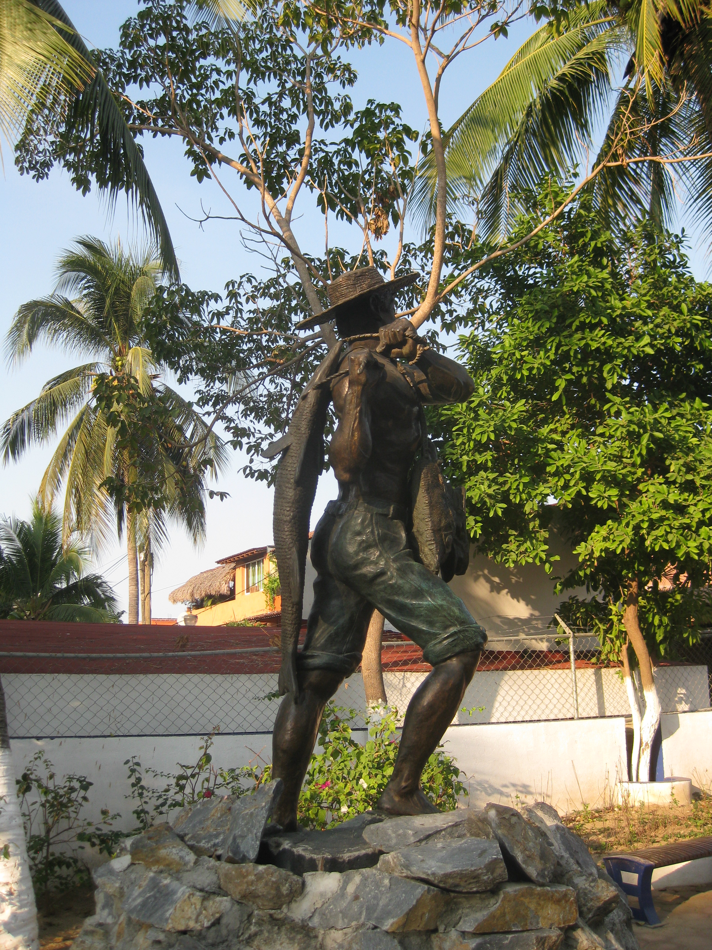 We started off early Tuesday morning, 7:00 am and expected to arrive in Ixtapa about 9:30. Weather was pleasantly cool at that hour of the day. I did need Bonny to walk at my pace, but we chatted on and it what seemed like minutes came to the place where the path heads left to Ixtapa instead of straight to Soriana’s. I had no idea what parts Zihuatanejo this path would take us but soon we crossed the main road where we could see the statues of the 4 ladies and knew where we were.