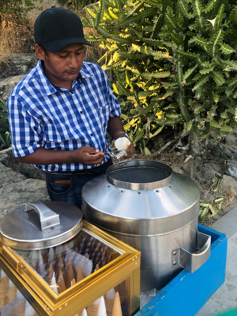 The knife sharpener is another of my favorite mini merchants. He pushes his sharpening wheel through town to the tune of a high pitched penny whistle. Fruit carts of every size and shape are pushed others are powered by bicycle. The coconut man cry’s out “cocooo, cocooo” and then with his machete he will wack out that coco nut, put a straw in it and you have a delicious drink. The candy man is strangely quiet as he moves from one location to another pushing an enormous wooden wheelbarrow filled with the most beautiful array of candy. Ice cream carts have the sound of a tricycle bell, or a clown horn depending on what type of ice cream. I still prefer the home made ice cream that you get from the big metal tubs. They usually sell 3 types from their divided tub, vanilla, lemon, and coconut, all really yummy.