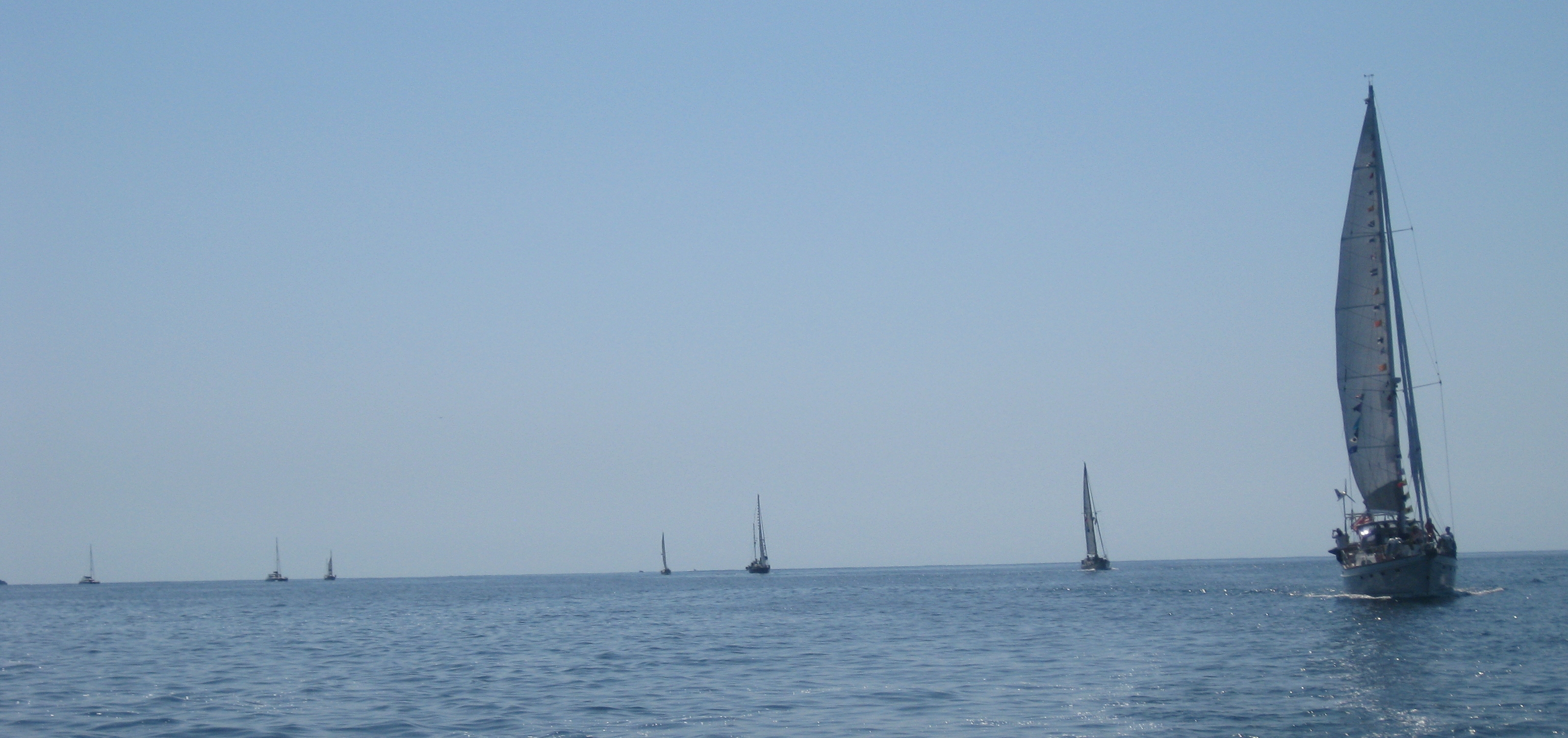 Morning arrived later than usually for me just enough time to get ready to go sailing. I think there were twice as many participants as there had been in previous years, but the event is well organized and soon we were all boarded into pangas to get to our assigned boats. I was on the the Tisha Baby with most gracious hosts Richard and Pam. My fellow passengers were two couples traveling together, one from Calif and one from Arizona, and 3 women from Chicago, mom, daughter and daughters best friend. Fun company. The Senor did not accompany me as being a career navy man gave him plenty of time at sea. Almost immediately after getting underway my hat blew off and I turned to see it bobbing away in the water. And of course it was one of my favorite hats. Our 1st mate saw what happened and radioed the boats behind us to pick up the hat if they could. A few minutes later i was informed that the rescue was successful. But I sort of wondered how I would retrieve it from what ever boat was kind enough to picked it out of the sea. Well I was soon to find out.