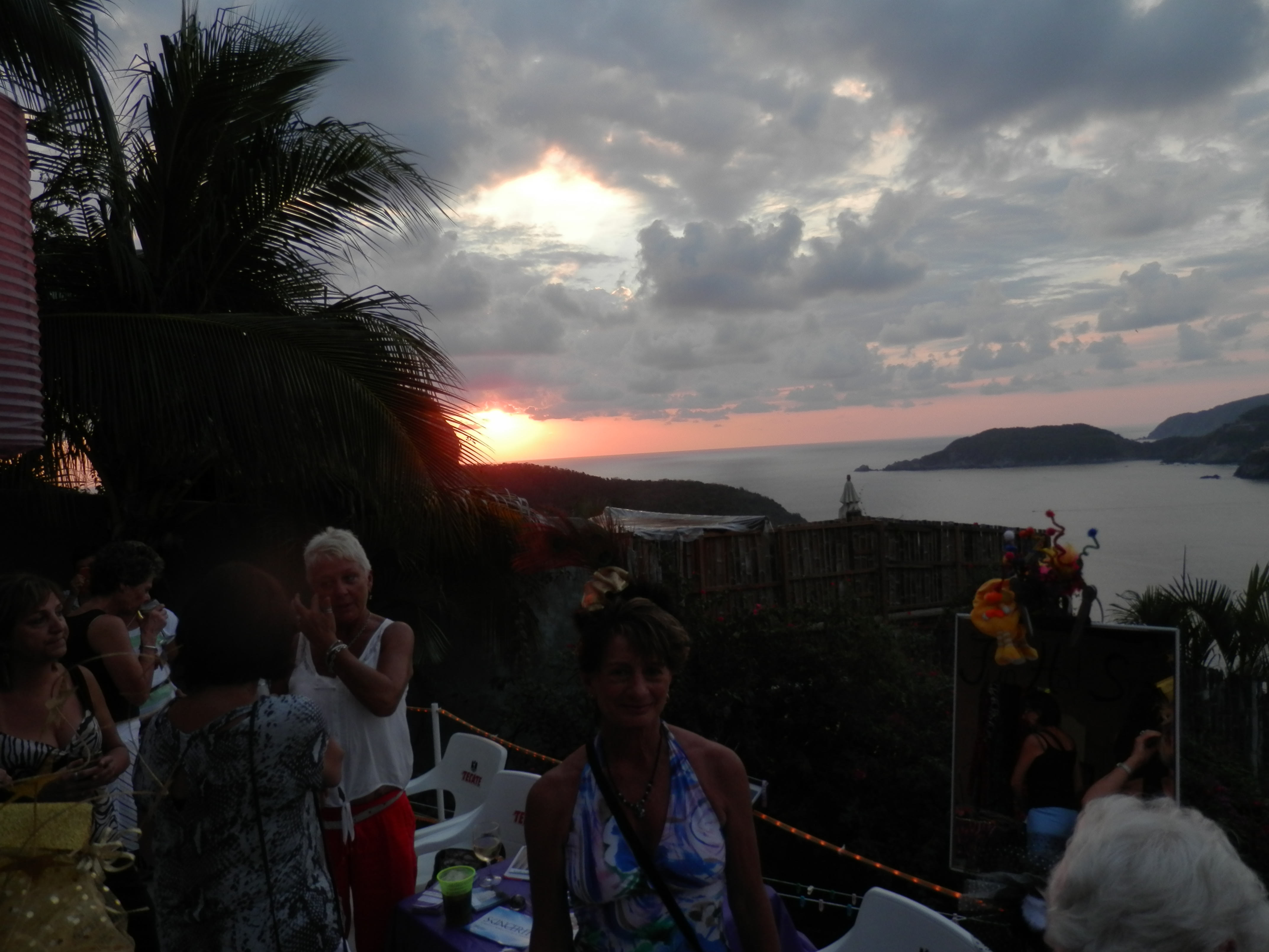 most amazing view of all of Zihuatanejo Bay. The event started at 6 and I’m sure the timing was so that the guests could enjoy the sunset. And enjoy I did. Several artist and vendors were there displaying their wares. but there was no pressure to buy. You bought tickets for drinks, there were door prizes and I won a bracelet. A very nice evening in a gorgeous place with many lovely people. I am so glad I went.