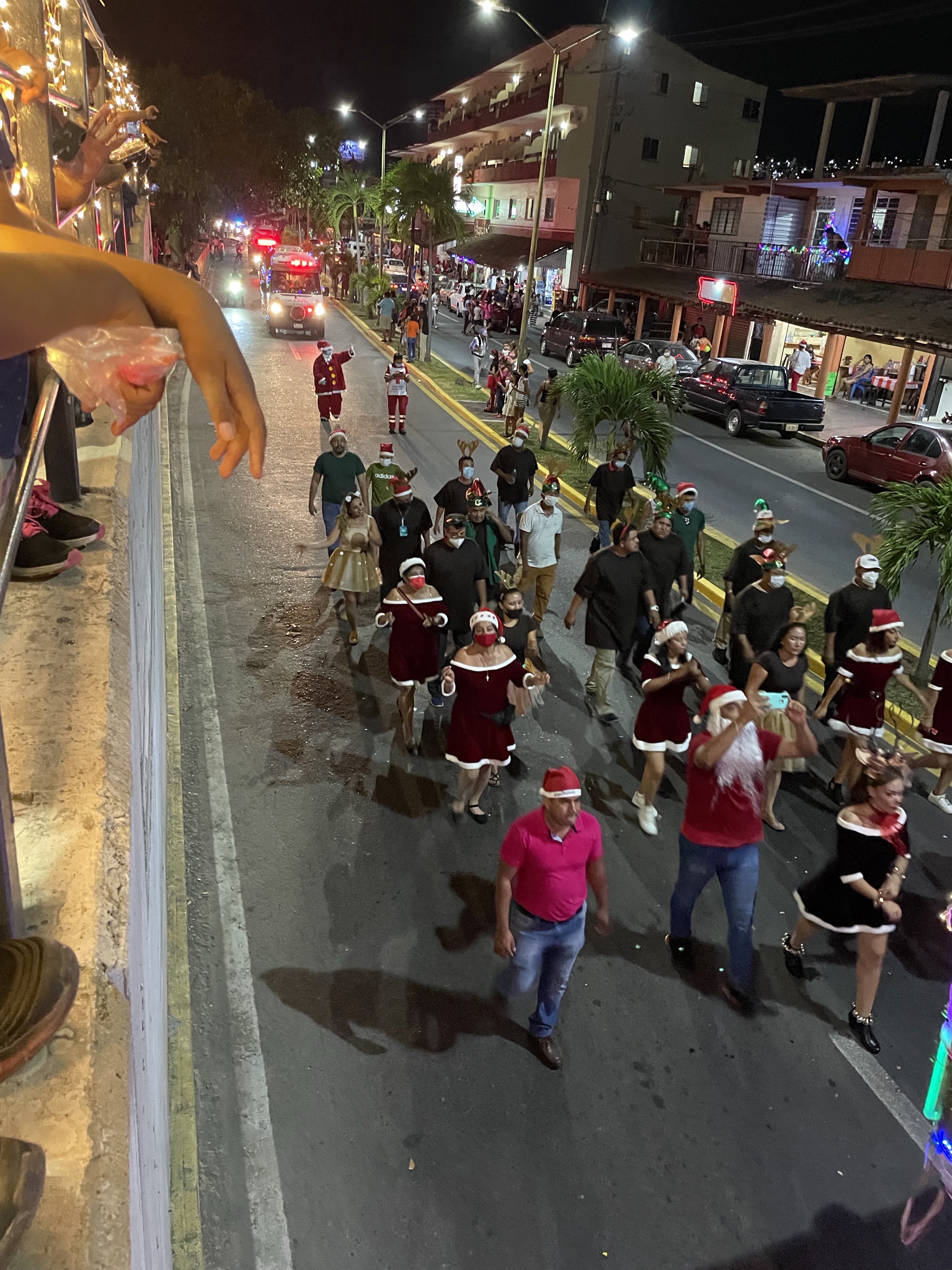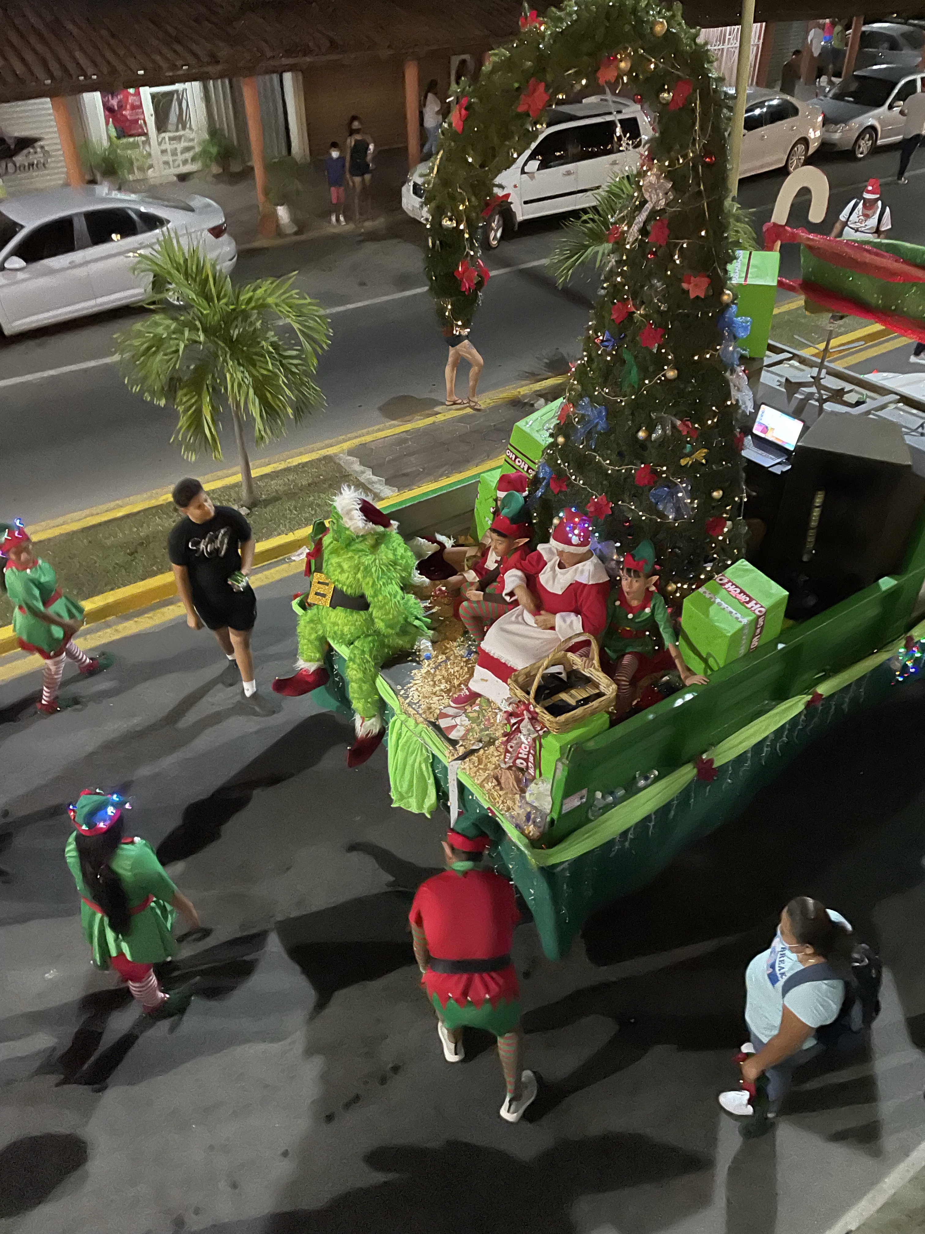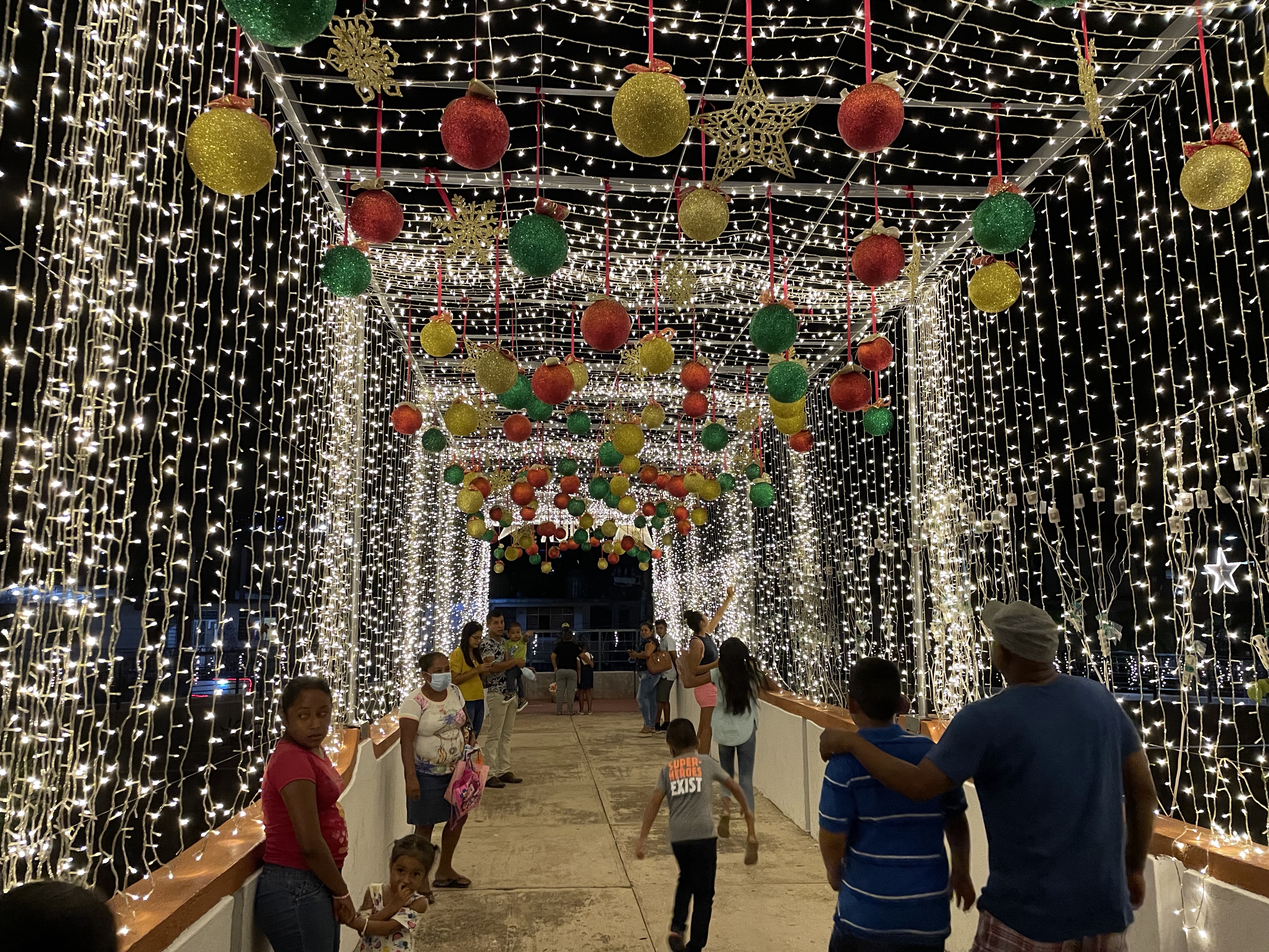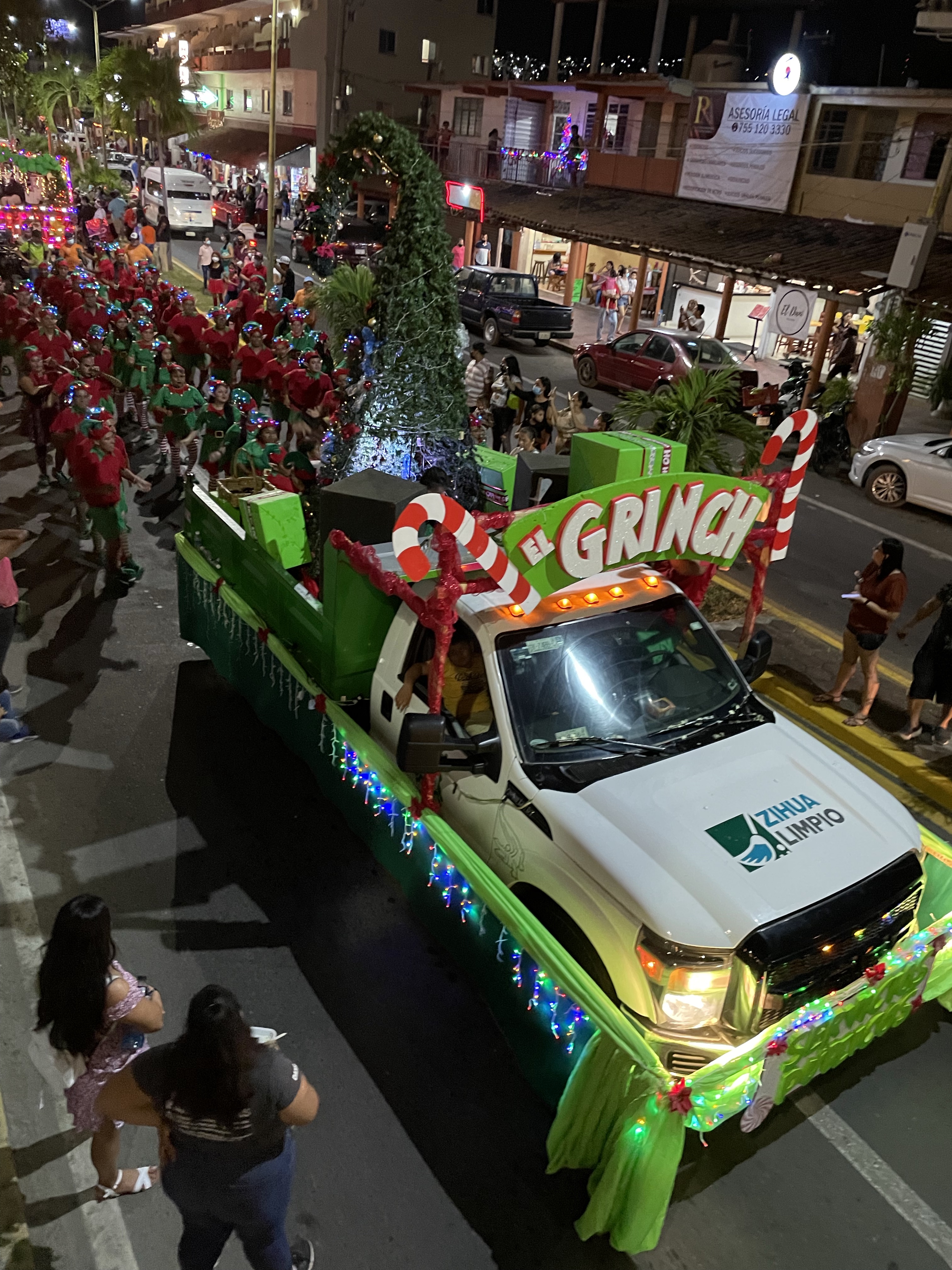 New door decorationDecorated tree along the maleconBeach front treePalm tree in disguise Festive pedestrian street.Zihuatanejo lit up for ChristmasChristmas Parade Zihuatanejo 2021Traditional dancersBridge over the canalChristmas party at Freddie’s BarFamilies watching their kids with Santa ClauseMy family that I miss.