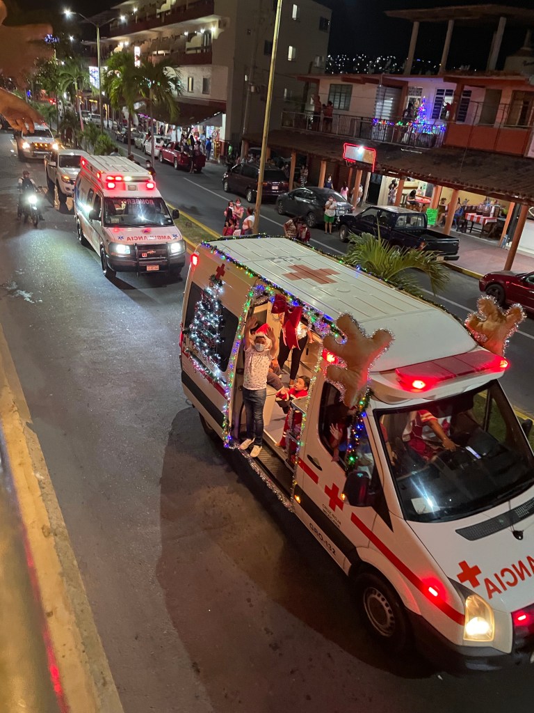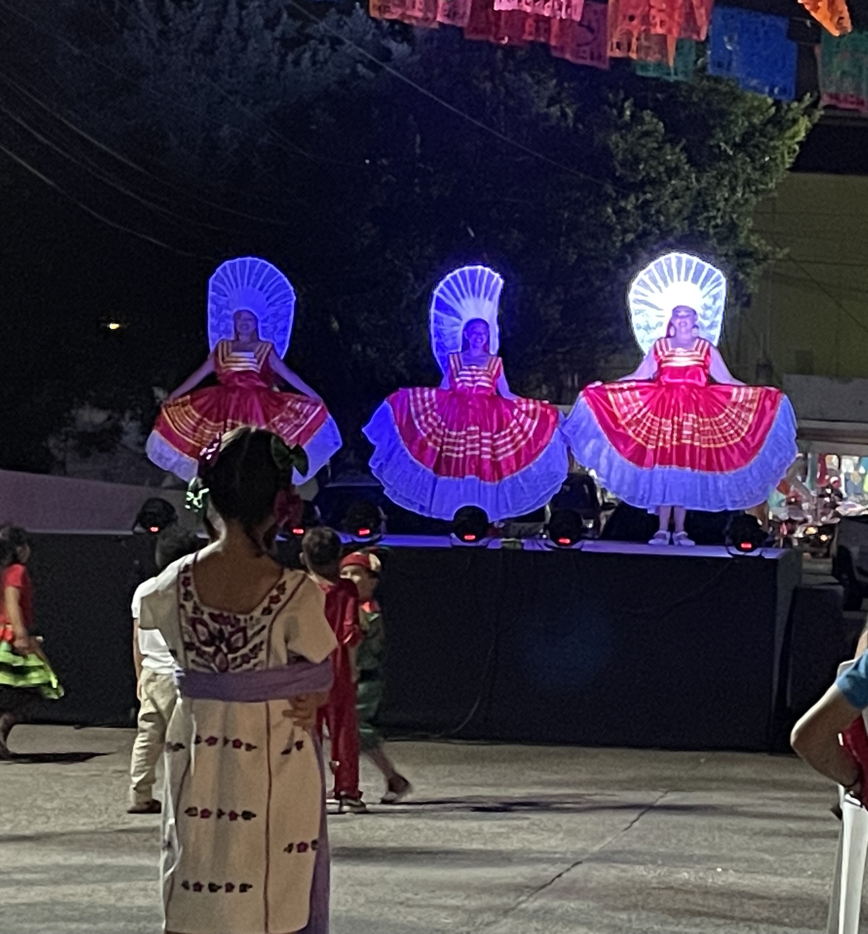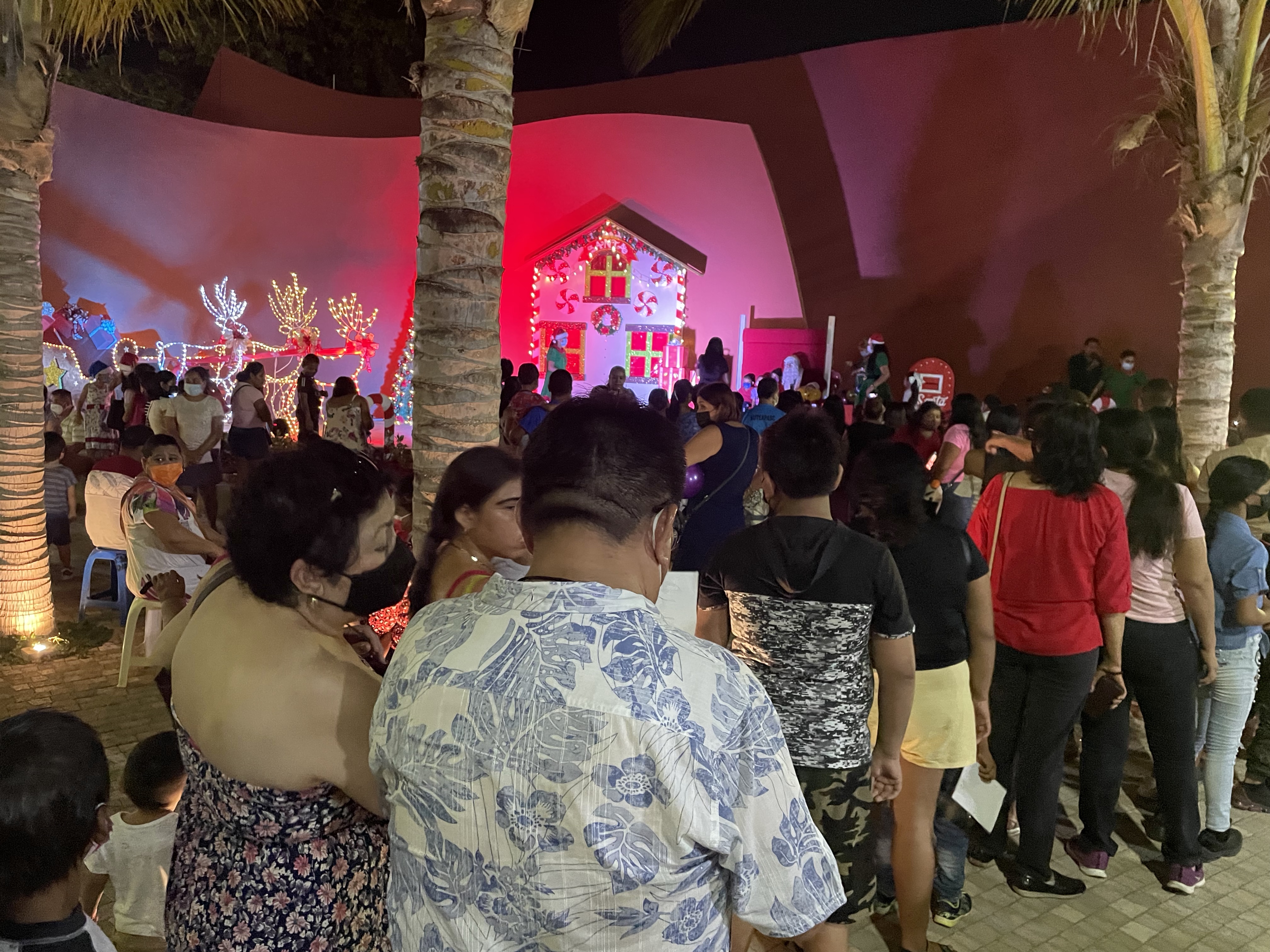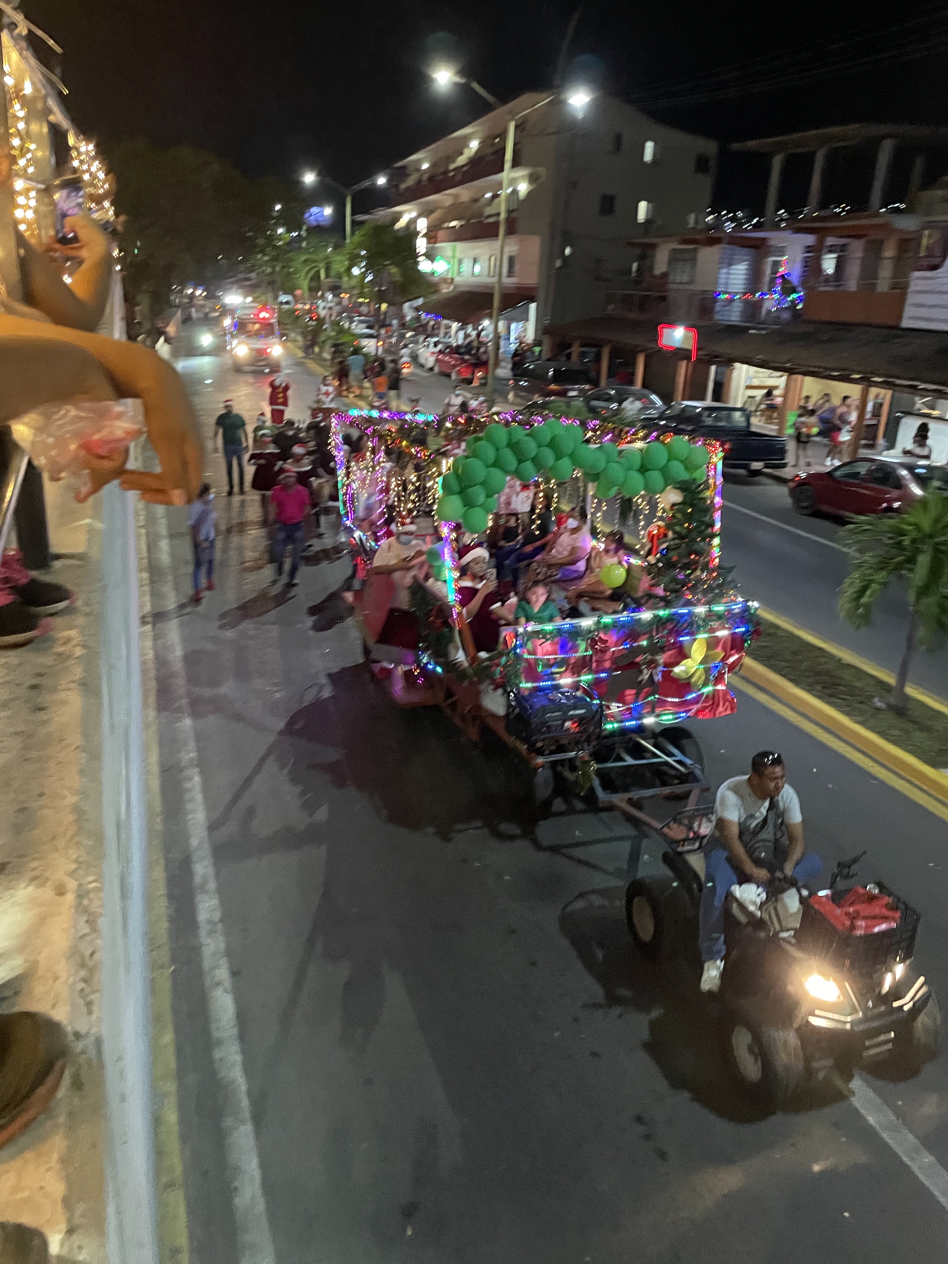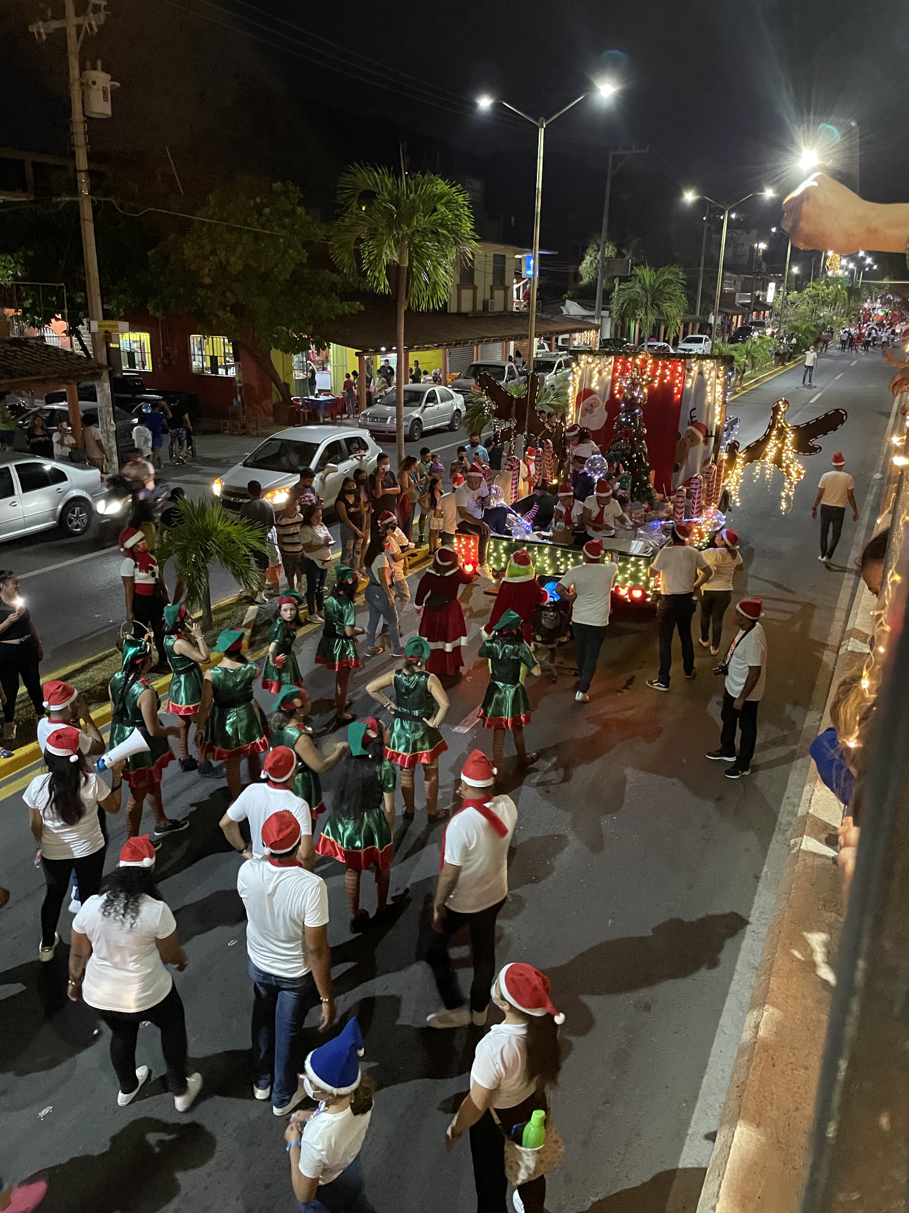New door decorationDecorated tree along the maleconBeach front treePalm tree in disguise Festive pedestrian street.Zihuatanejo lit up for ChristmasChristmas Parade Zihuatanejo 2021Traditional dancersBridge over the canalChristmas party at Freddie’s BarFamilies watching their kids with Santa ClauseMy family that I miss.