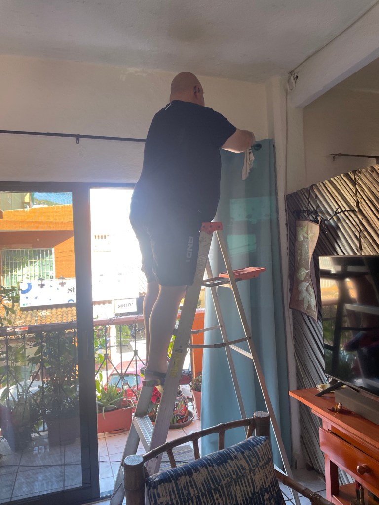 I even got some work out of him while here, he cleaned my curtain rods, installed a couple of screws and nails where I needed them, helped me with my Christmas lights. Unfortunately he took out my folding step ladder but were able to complete the tasks with the landlords ladder. It’s been kind of nice to have a man around the house.