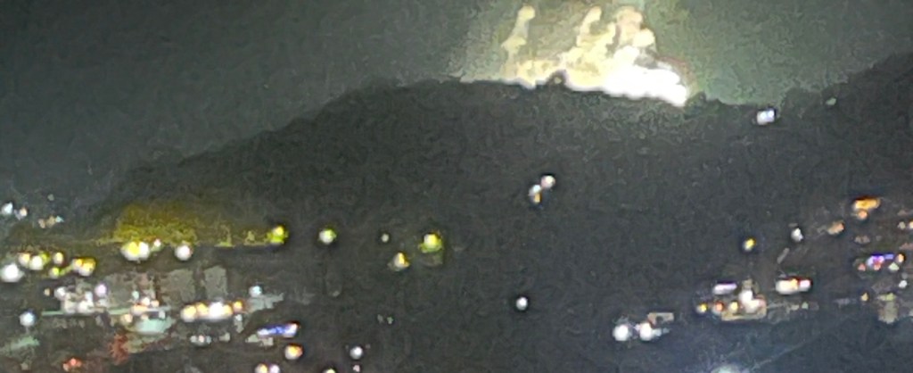 Last night with a soft breeze blowing and a light rain falling, the inside thermometer reading 80f/27c, I found it necessary to turn off the fan. And had a light wrap across my shoulders.